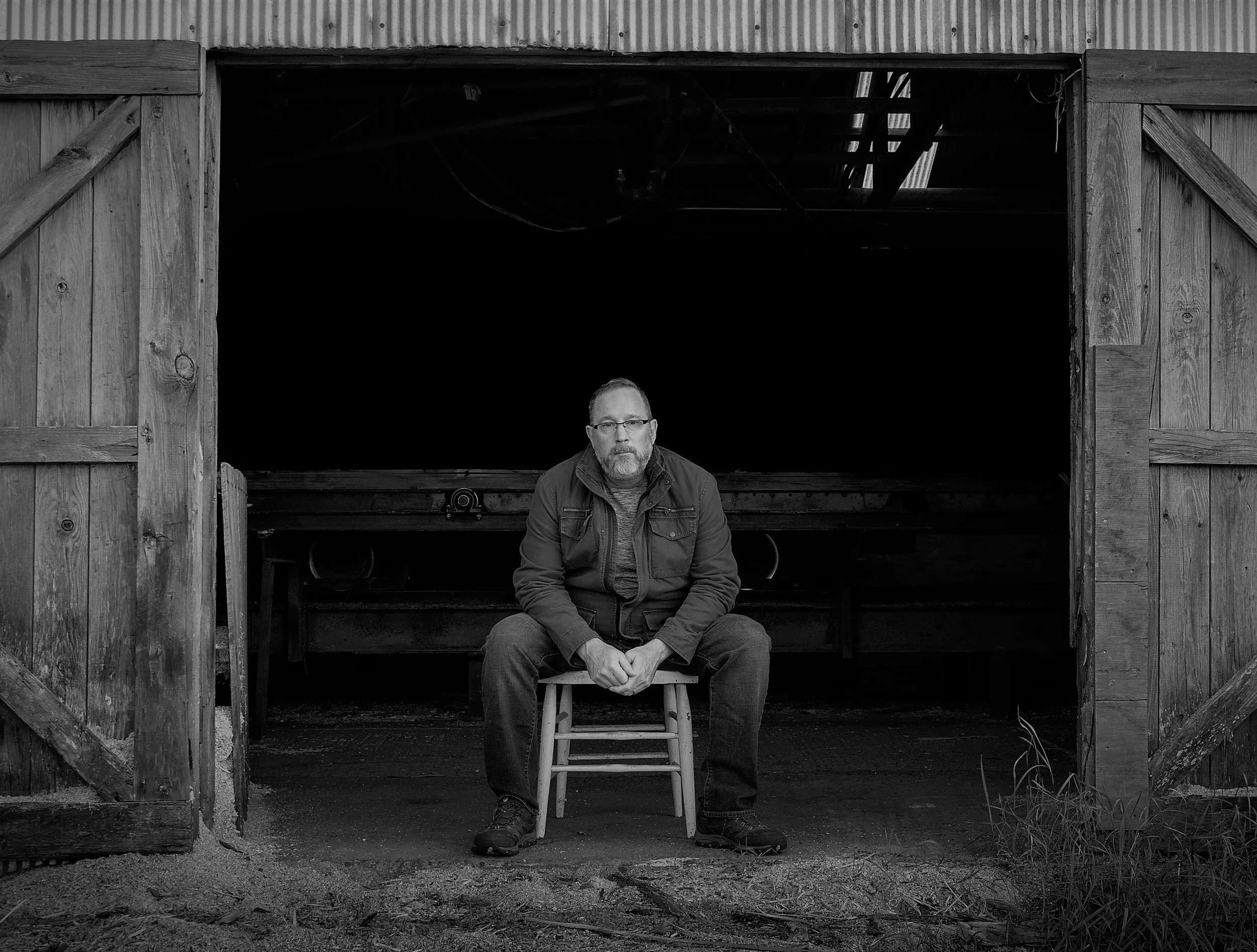 He works in all conditions the northern Wisconsin landscape offers — in blizzards, in sub-zero temperatures, and deep into the night with a handheld light and a long exposure, looking for what darkness reveals that daylight conceals. The night work within the Erasure series uses light painting to illuminate forest interiors and rural structures, finding architectural and psychological complexity in landscapes most photographers would not enter after dark.
